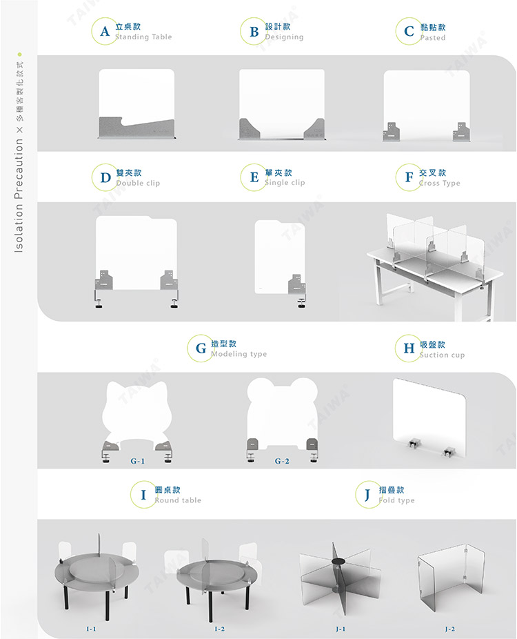 最近、主な飲食店や教育機関で使用されているパーティションに合わせて、次のタイプが新発売されました。