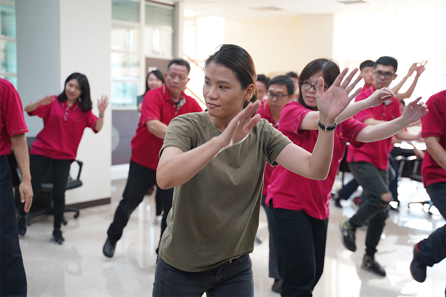 為避免長久工作型態而形成的習慣傷害,安排體適能課程指導同仁們避免傷害和學習如何舒緩 長時間労働による怪我を予防するために、体力を整え、同僚が危害を加えないように指導し、リラックスする方法を学びます